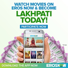 In a very easy to participate format where the lucky winners literally get paid to enjoy watching the platform’s entertainment content, viewers can download the Eros Now app or register on the website and update their profiles while they watch their favourite movies and shows. The contest is open for free registered users as well as premium subscribers. Post accepting the terms and conditions on daily basis, registered users will have to watch atleast 60 mins of movies and shows from Eros Now’s vast content library while the Plus/Premium users need to watch atleast 30 mins to qualify for the Lakhpati contest.