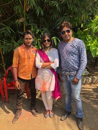 होली की फागुनी बयार खत्म हुई भले ही एक महीने से भी अधिक हो गए हैं लेकिन अभिनेत्री ऋचा दीक्षित पिछले दिनों अपने को स्टार हर्षवर्धन निराला के साथ जम कर होली खेलते दिखी । होली का सुरूर उनपर इस कदर सवार था कि उन्होंने अपने निर्देशक विष्णु शंकर बेलू और उनकी होली कवर करने गए पत्रकारों को भी गुलाल लगाया । जी हां , निर्देशक विष्णु शंकर बेलू की फ़िल्म जानू मेरी जान की आखिरी दिन की शूटिंग मुम्बई के रसियन विला में सम्पन्न हुई ।