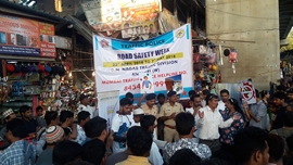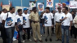 On 26 th April ” Arena Animation Andheri West And  Yusuf  Qasmi  founder of Smita Patil Street Theatre celebrated National Road Safety Week,In association with Transport Commissioner And  D.N.nagar Traffic Police at Andheri west and Andheri east areas to aware the masses through street play “ROAD SAFETY ”